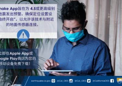 如需了解关于Earthquake Warning California、MyShake App或其他地震预警资源的更多信息,请访问 earthquake.ca.gov。