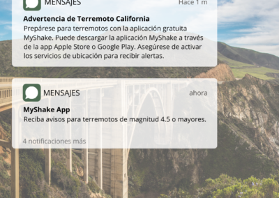 • #MyShakeApp brinda a los residentes de California la posibilidad de recibir advertencias de terremotos. Obtenga más información en earthquake.ca.gov