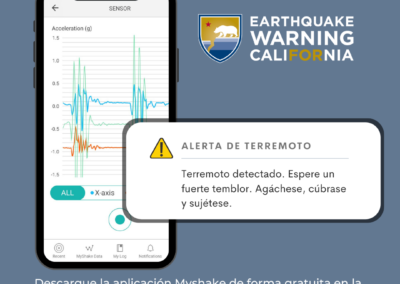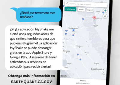 • Los californianos pueden recibir advertencias sobre terremotos de 4.5M o más a través de la aplicación gratuita #MyShakeApp. Obtenga más información en earthquake.ca.gov.
