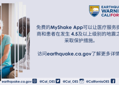 如需了解关于MyShake App和Earthquake Warning California的更多信息,请访问 earthquake.ca.gov。