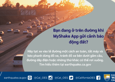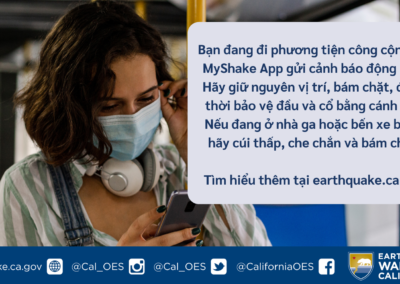 Để tìm hiểu thêm về Earthquake Warning California, ứng dụng MyShake App hoặc các tài nguyên cảnh báo động đất khác, vui lòng truy cập earthquake.ca.gov.