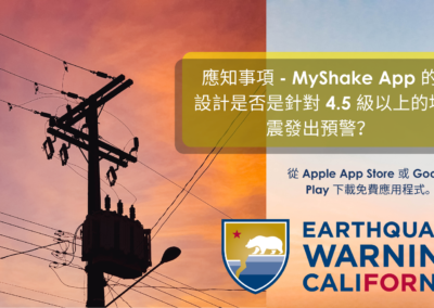 - 分享 MyShake App 相關資訊給住在加州或在加州工作的員工、客戶和供應商,協助他們瞭解地震發生時如何保護自身安全。