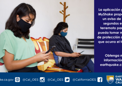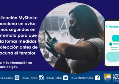 Para obtener más información sobre Earthquake Warning California (Advertencia de Terremoto California), la aplicación MyShake u otros recursos de alerta de terremotos, visite earthquake.ca.gov.