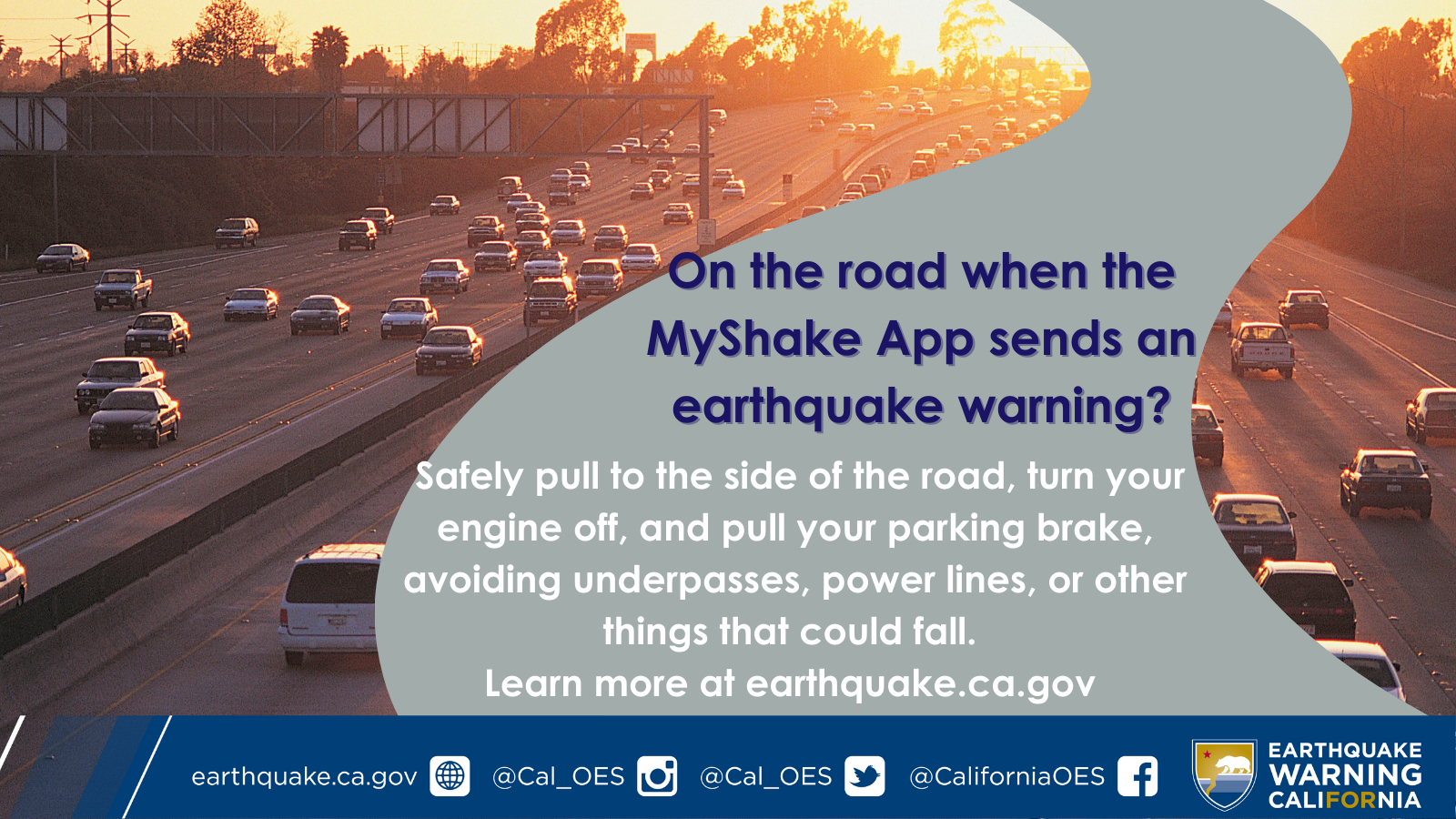 Share the following information via newsletter or social media! For questions relating to Earthquake Warning California, email earthquakeinfo@caloes.ca.gov.