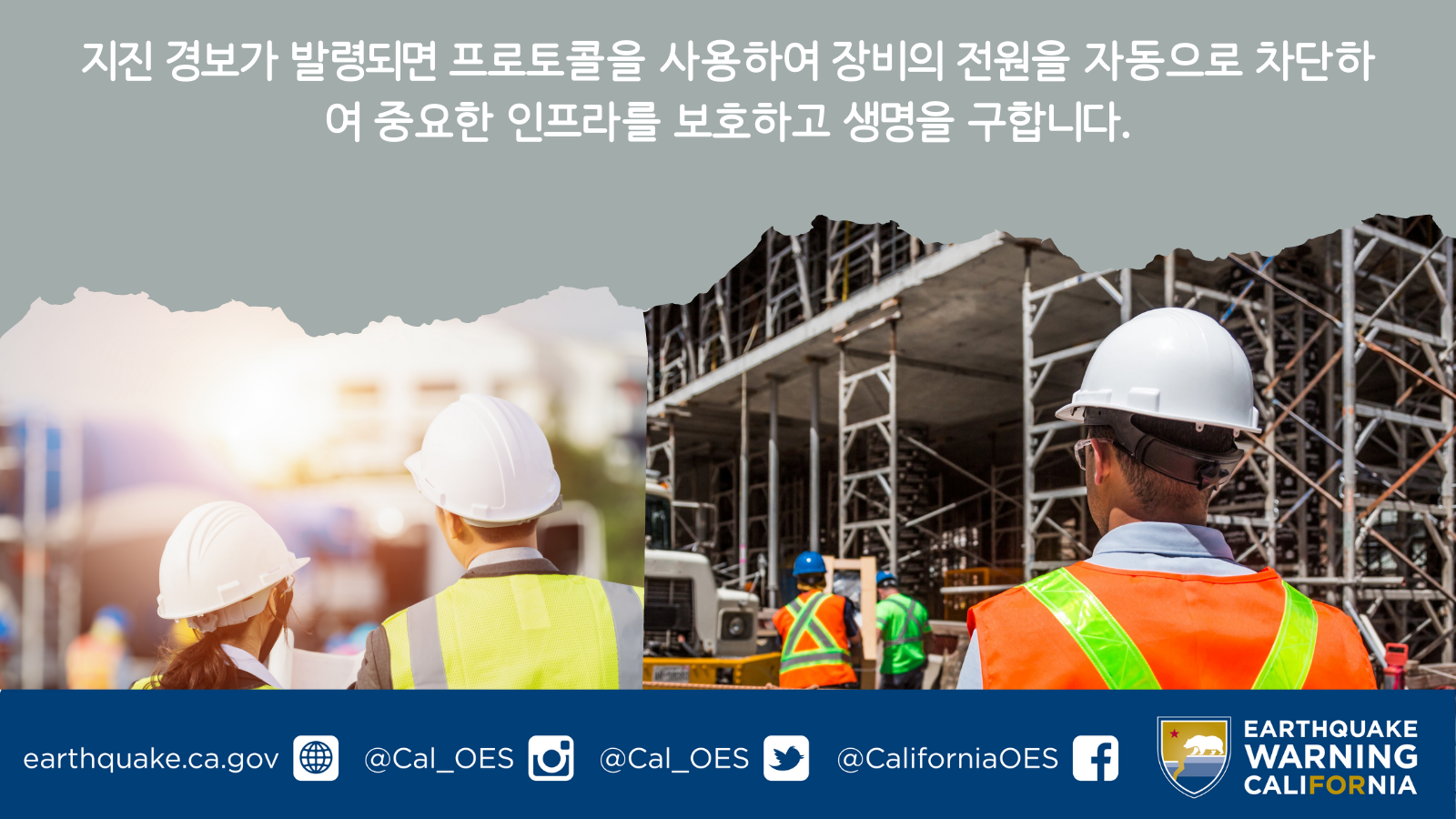 다음 그래픽은 Twitter(1200 x 675픽셀) 맞게 크기가 조정되었습니다. 만일 다른 크기를 찾으신다면, earthquakeinfo@caloes.ca.gov 이메일을 보내주세요.