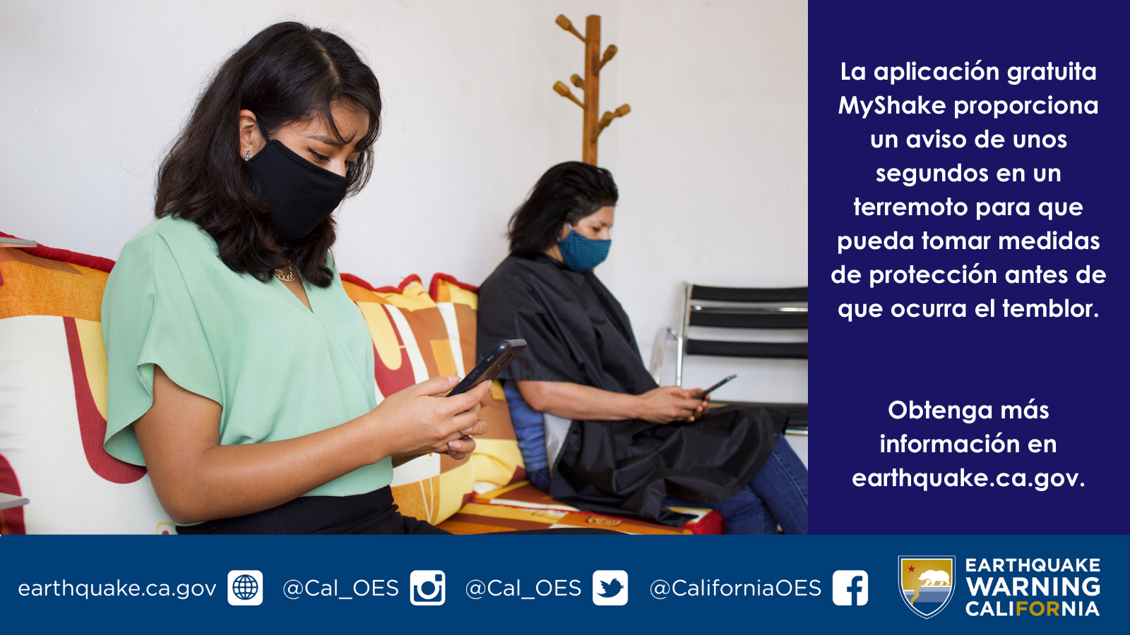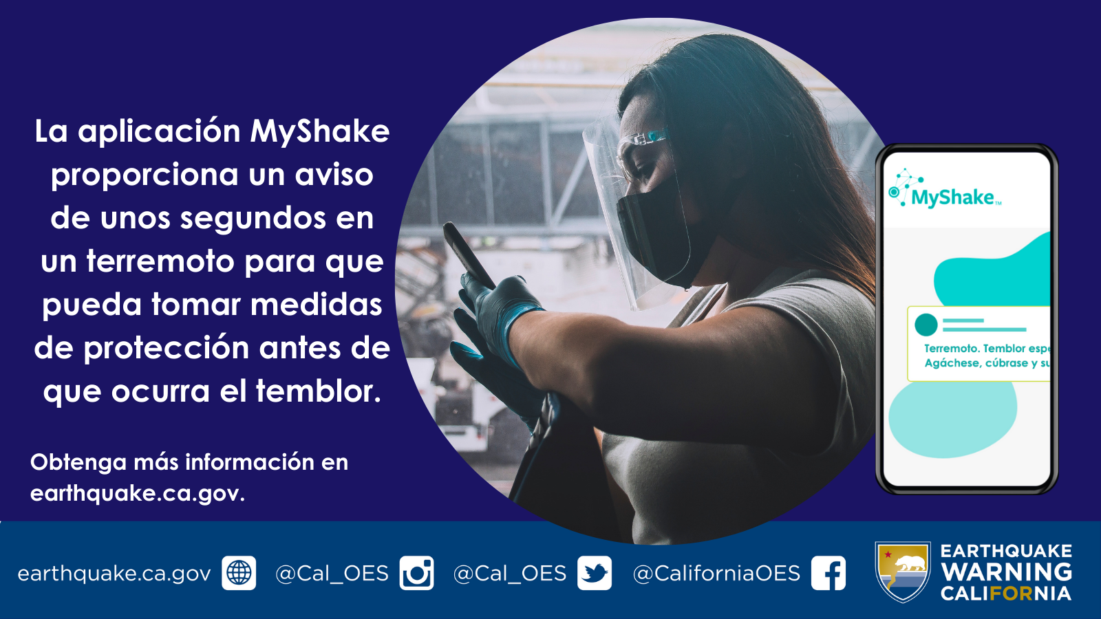 Para obtener más información sobre la aplicación MyShake y Earthquake Warning California (Advertencia de Terremoto California), visite earthquake.ca.gov.